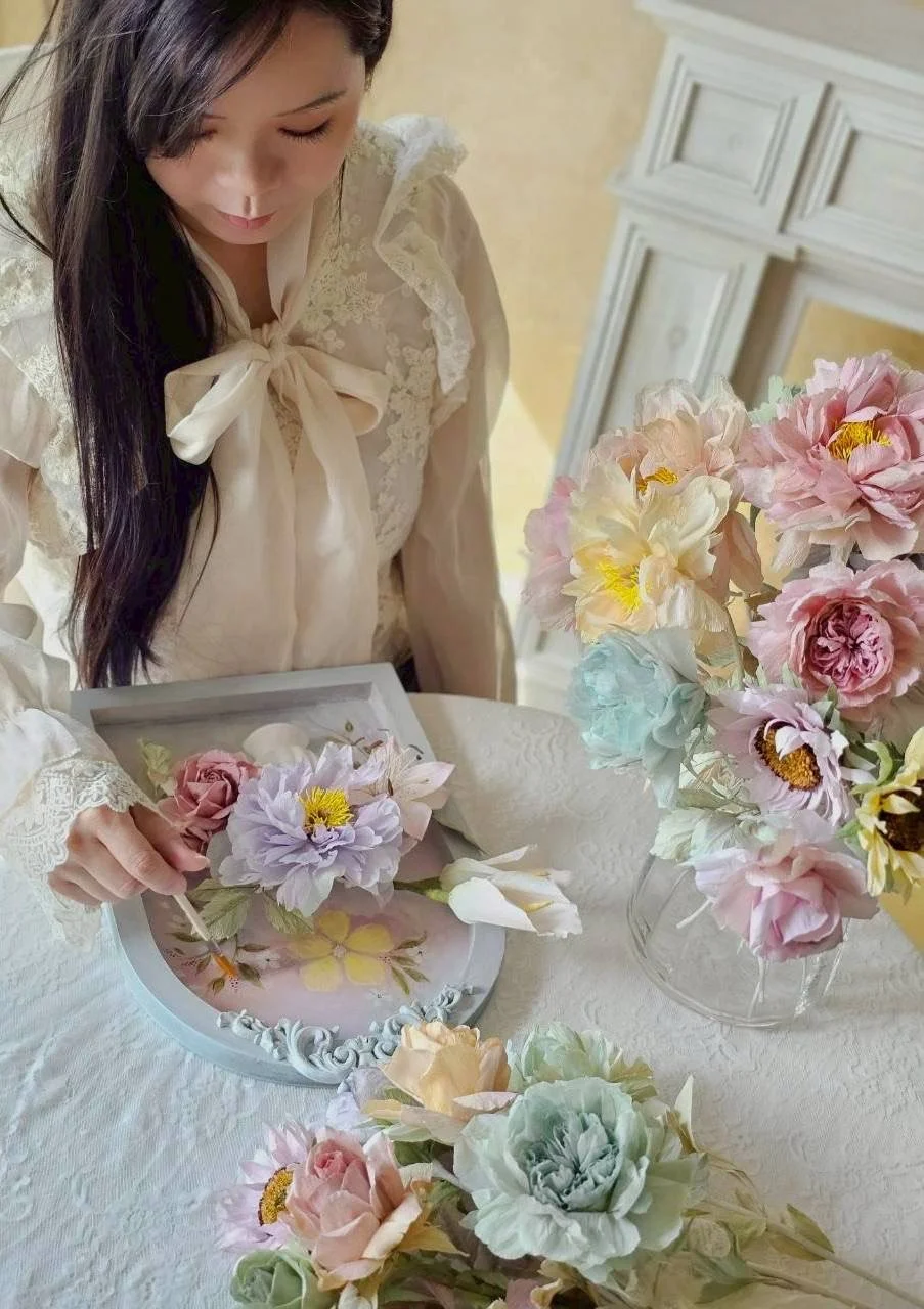 At A’your Flower Art Studio, she continues to refine and expand this vision, introducing classes that reinterpret flowers through diverse mediums such as plaster paste, fragrance-infused paper, MP soap, and botanical forest-inspired techniques. Her recent focus on plant-based design has captured wide attention, admired for its quiet sophistication and imaginative depth.